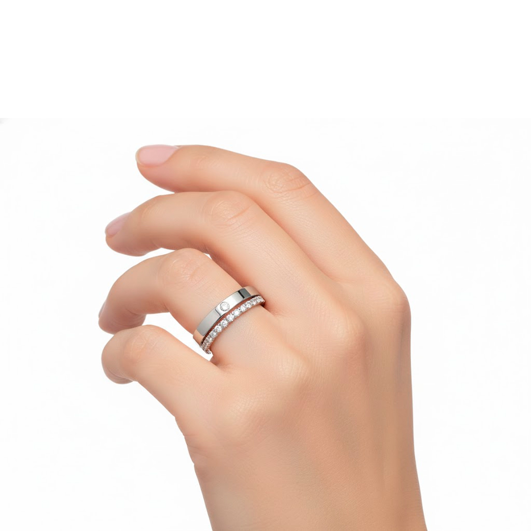 Alianças de Namoro Prata 925 2mm Quad + Anel Meia aliança