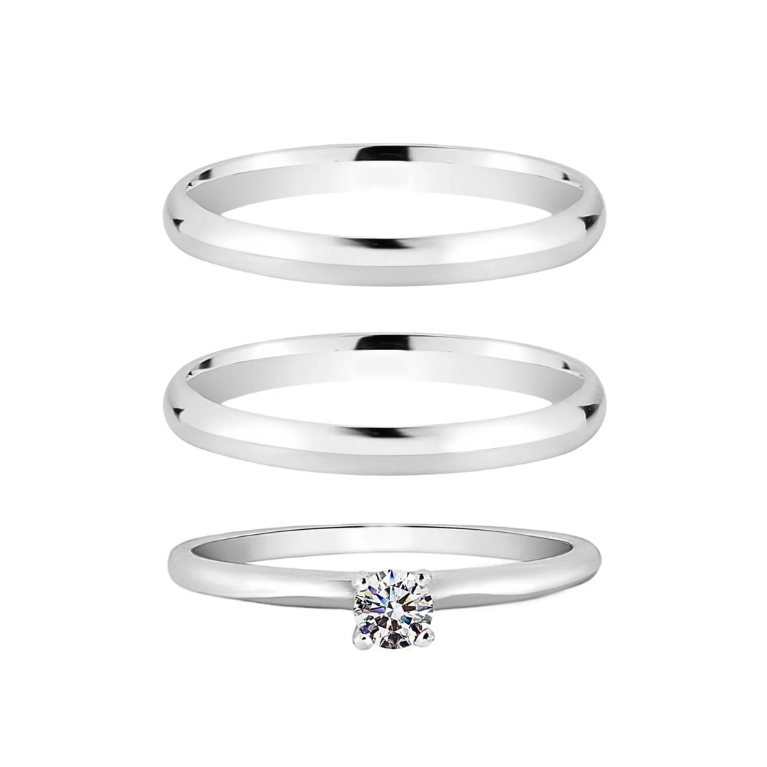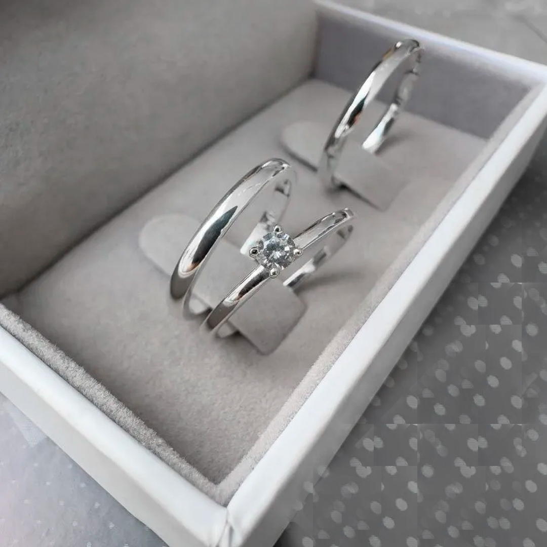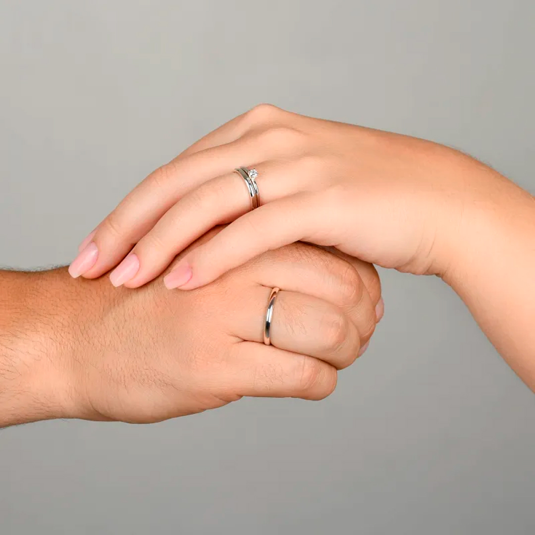 Alianças de Namoro Prata 925 Tradicionais 2mm + Anel Solitário