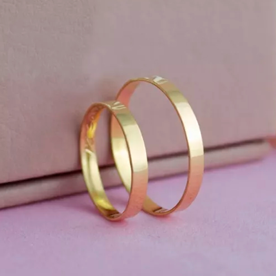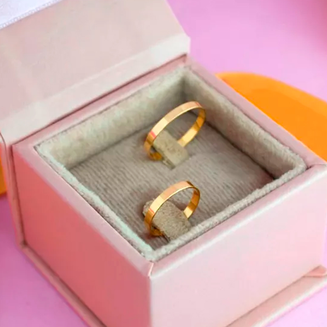 Estojo para Alianças, Par de Alianças em Ouro e Gravação