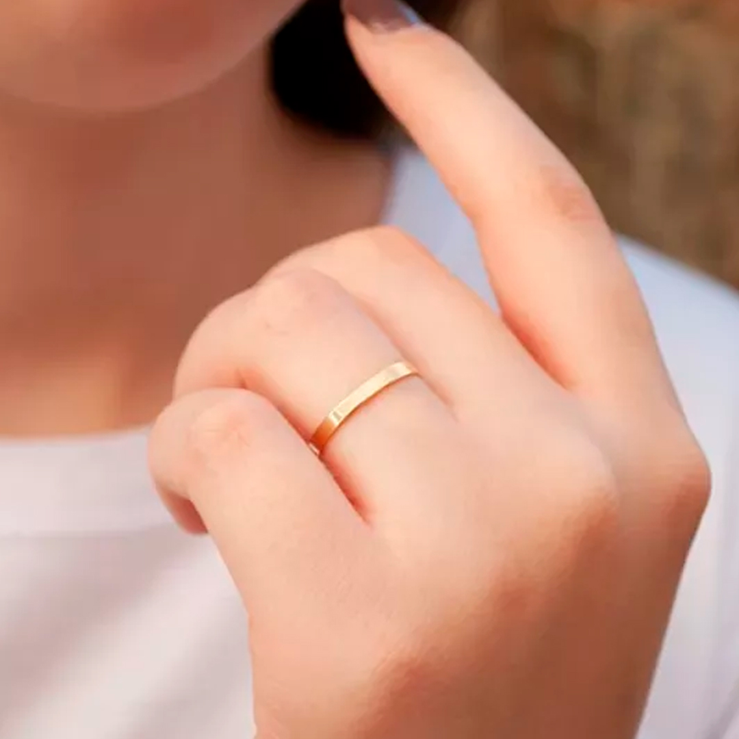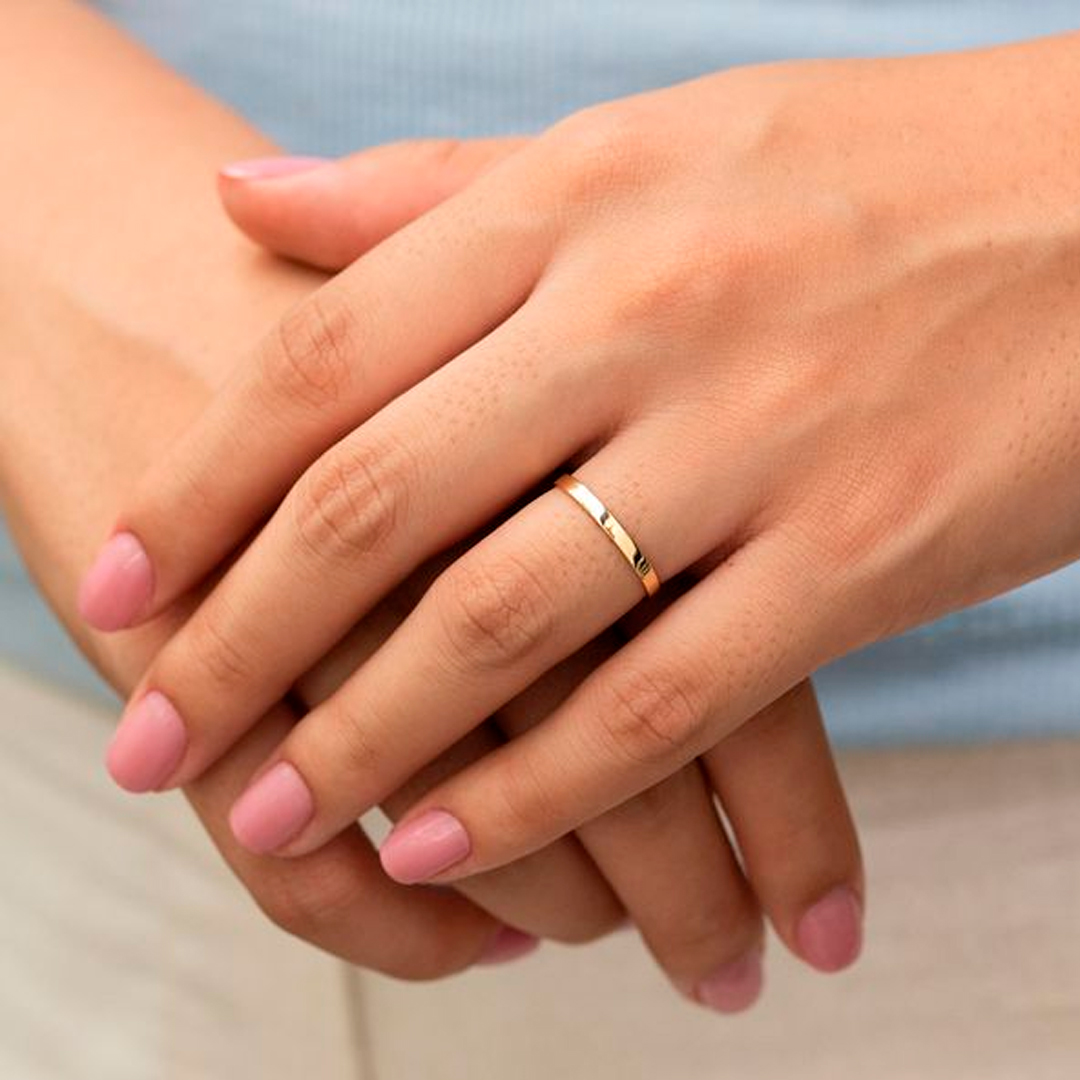 Observação: é importante lembrar que a volta e medida,neste caso, devem ser feitas pela junta, pois muitas pessoas possuem a parte final do dedo mais fina do que a junta. Se esse for o seu caso, a aliança ficará pequena em seu dedo e não passará em sua junta, portanto, tenha muito cuidado.