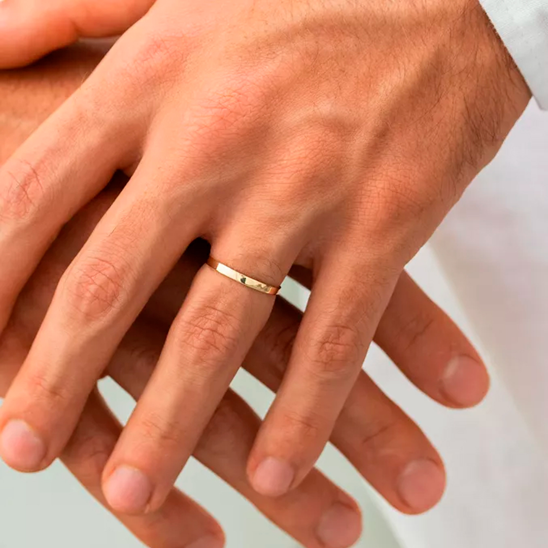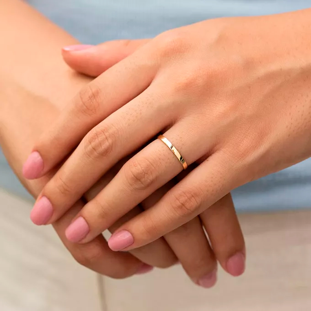 Observação: é importante lembrar que a volta e medida,neste caso, devem ser feitas pela junta, pois muitas pessoas possuem a parte final do dedo mais fina do que a junta. Se esse for o seu caso, a aliança ficará pequena em seu dedo e não passará em sua junta, portanto, tenha muito cuidado.