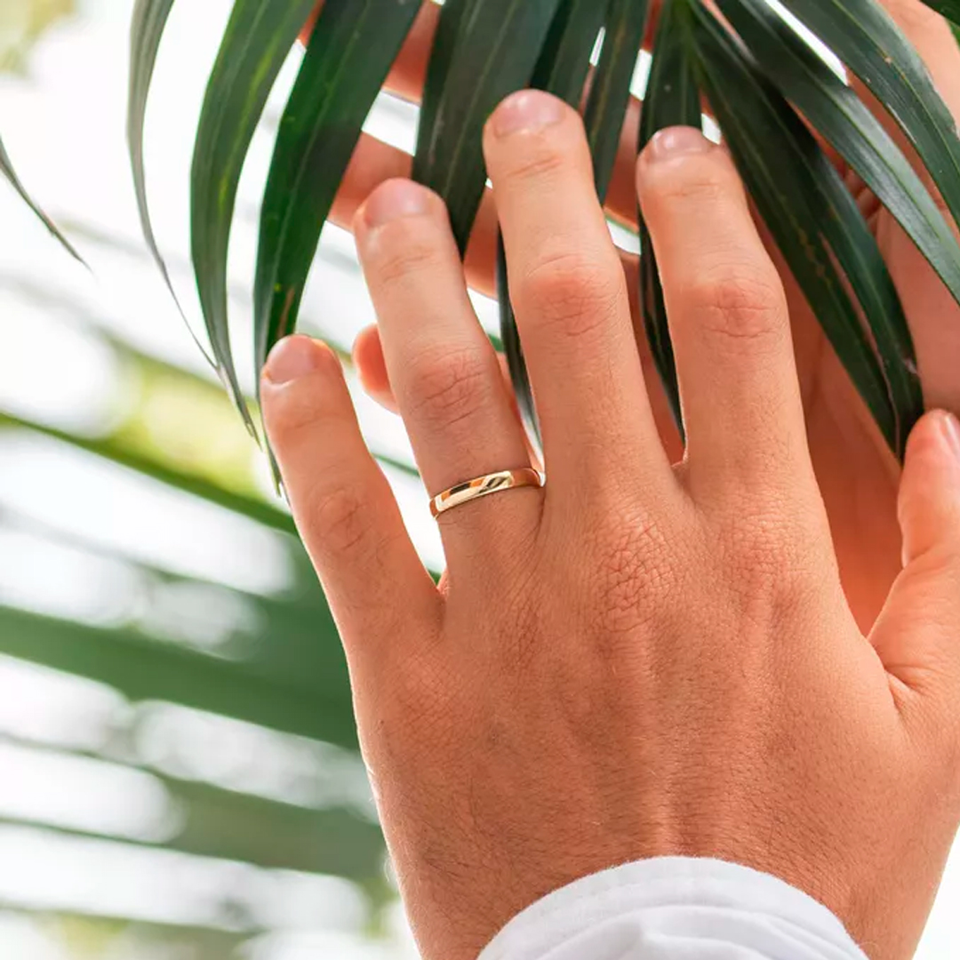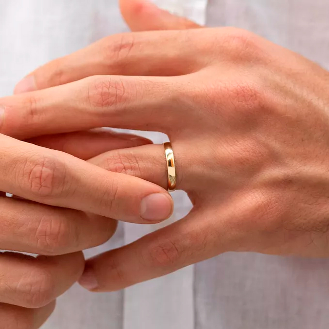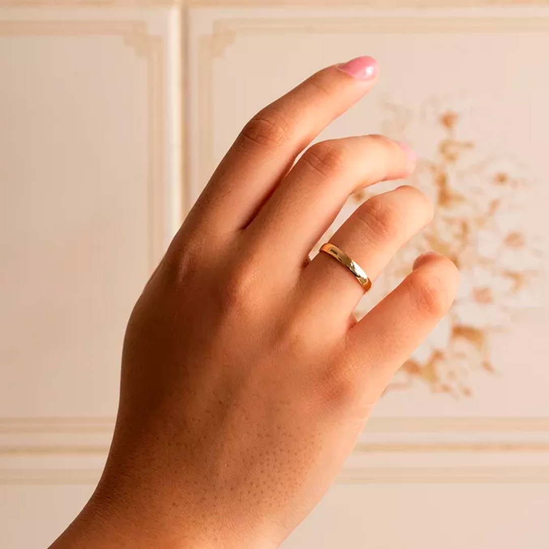Observação: é importante lembrar que a volta e medida,neste caso, devem ser feitas pela junta, pois muitas pessoas possuem a parte final do dedo mais fina do que a junta. Se esse for o seu caso, a aliança ficará pequena em seu dedo e não passará em sua junta, portanto, tenha muito cuidado.