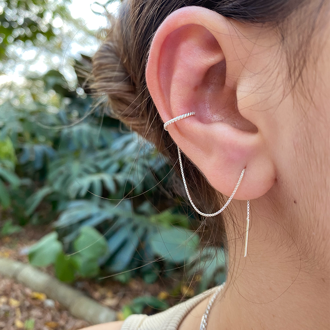 Brinco Piercing E Pino Veneziana Prata 925