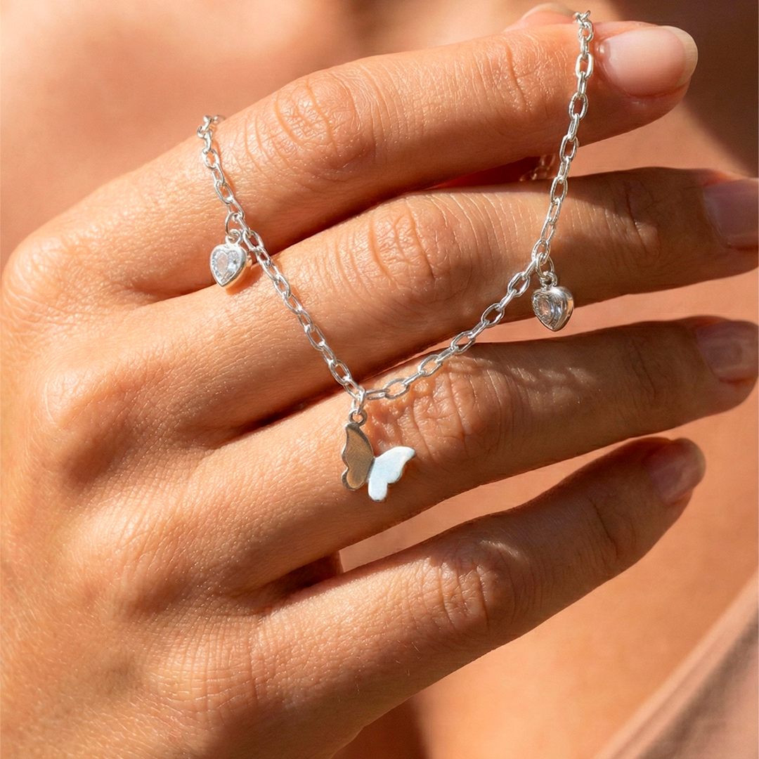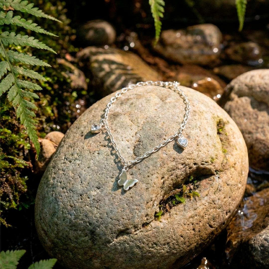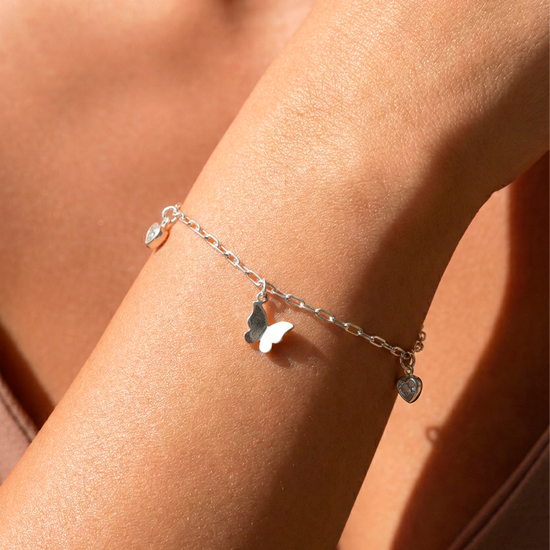 Pulseira Corações Borboleta Origami Prata 925