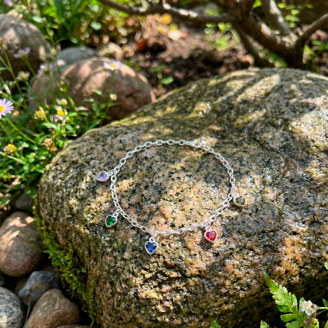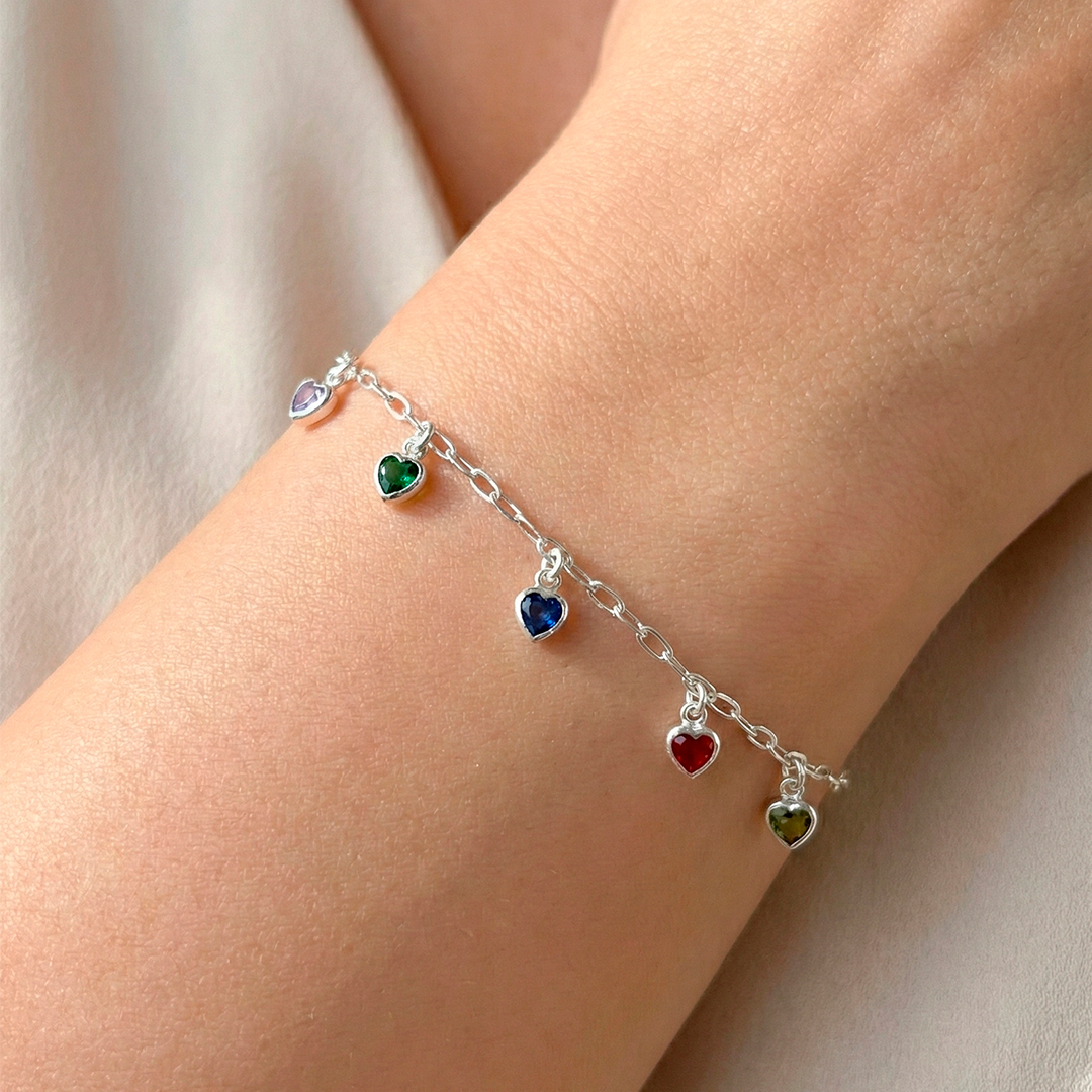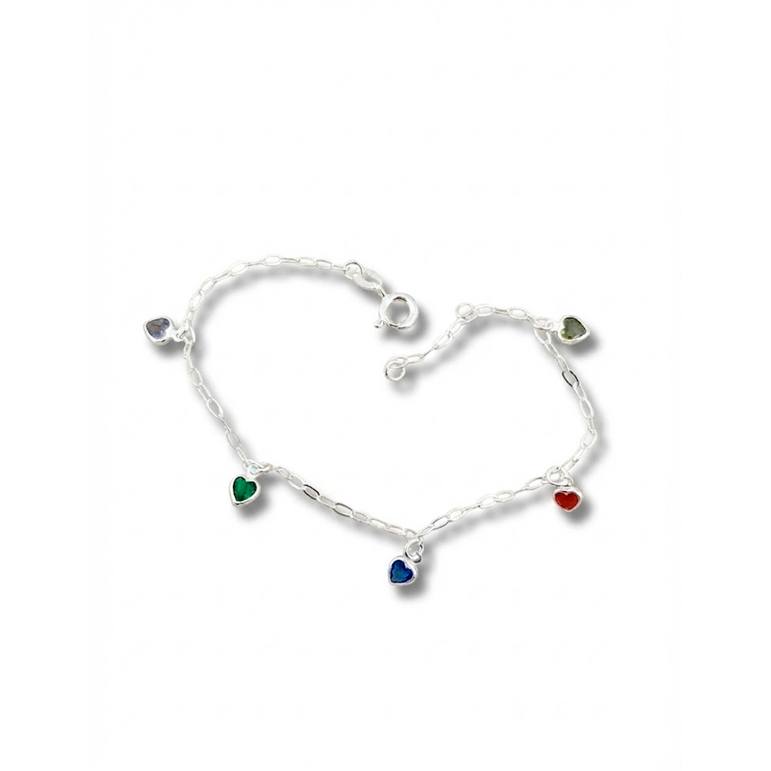 Pulseira Corações Coloridos Prata 925
