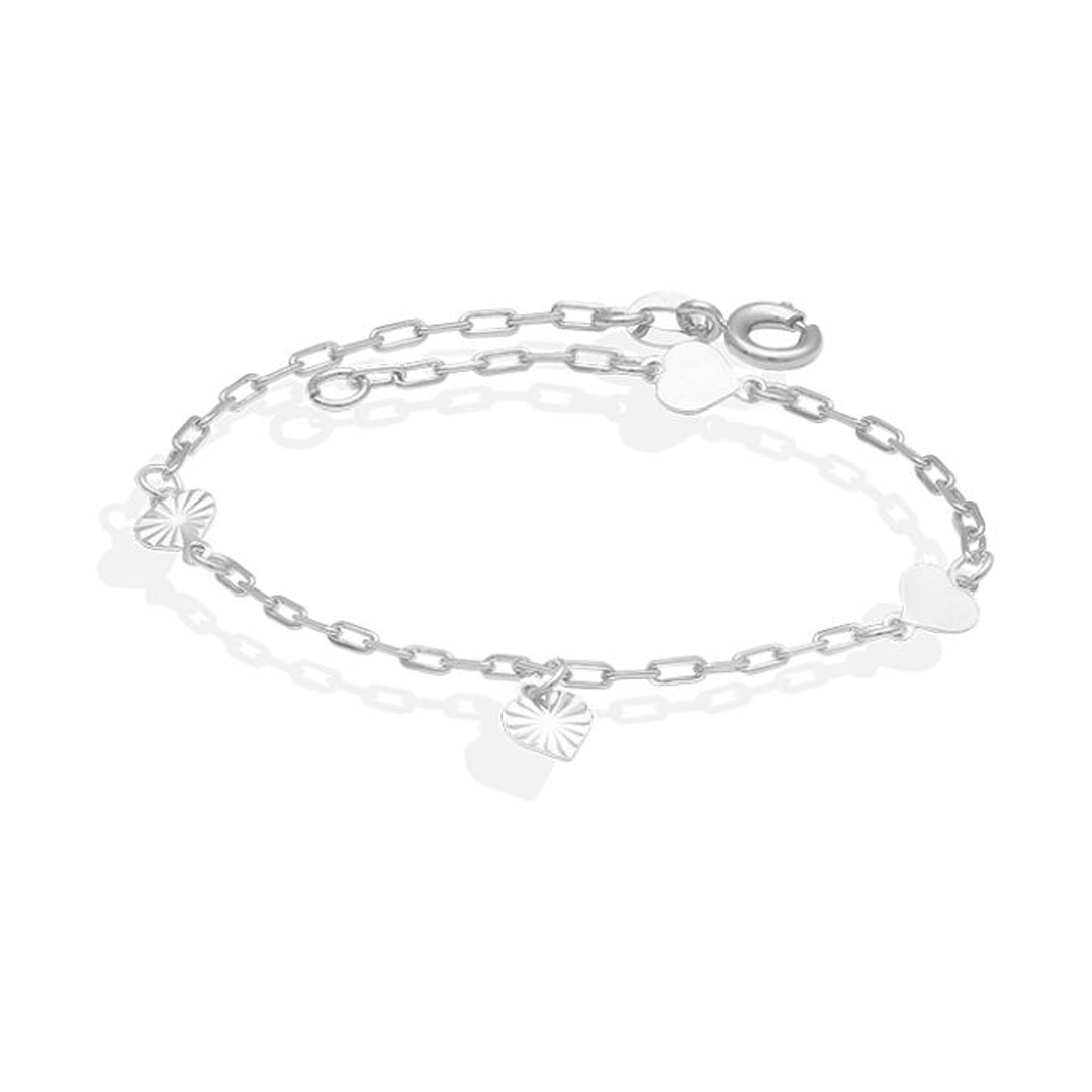 Pulseira De Prata Corações Diamantados